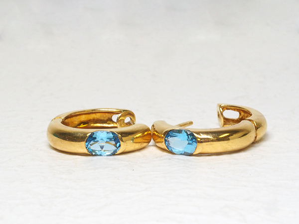 古い直径6mm×4mmのブルートパーズ(0.50ct、0.48ct)のピアスです✨