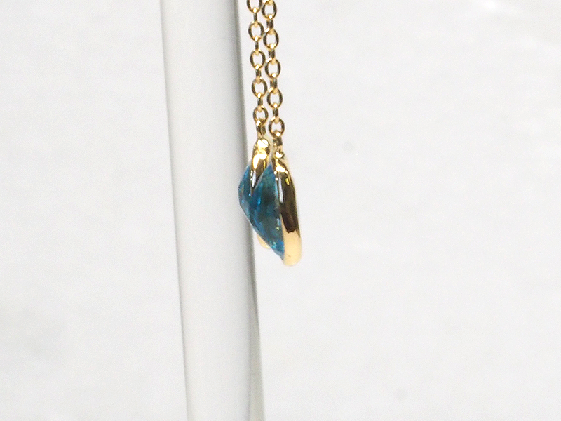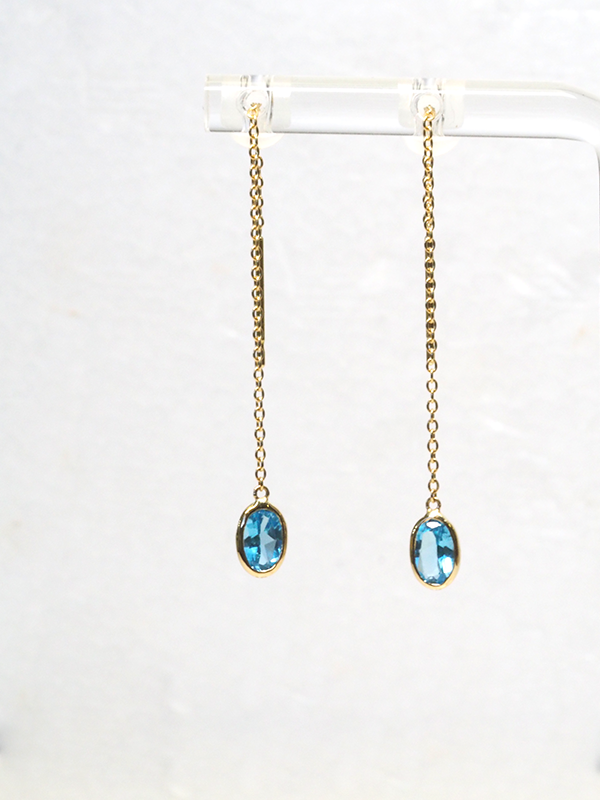 こちらのブルートパーズをK18でシンプルなガードル巻きでチェーンピアスへリフォームいたしました✨✨