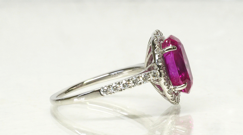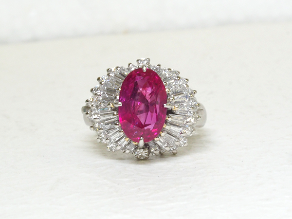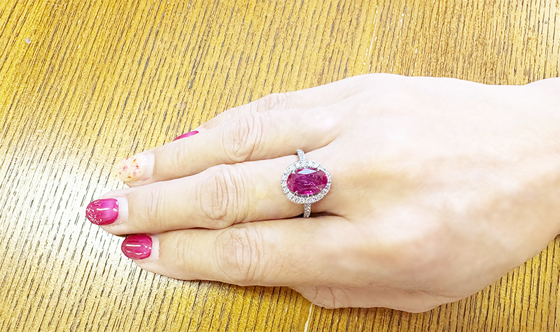 今回ご紹介するのは、超大粒4.05ct(直径10mm×8mm)のちょっと派手でバブリーなリングデザインのルビーリングです✨