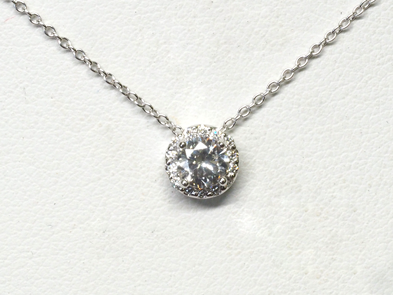 ポストからチェーン1.5cm下にガードル巻きのダイヤが吊るされている