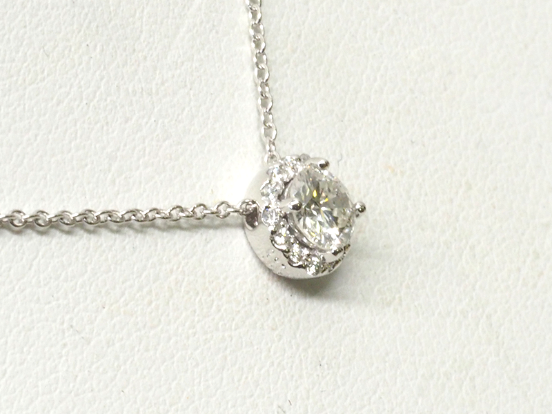 Pt850製丸アズキチェーンがスルーでペンダントトップにセッティングされており
