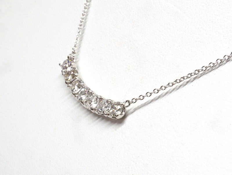 こちらの7ピース トータル1.02ctのダイヤモンドをPt900製4点留めシャトンでセッティングしたラインネックレスへリフォームいたしました✨✨