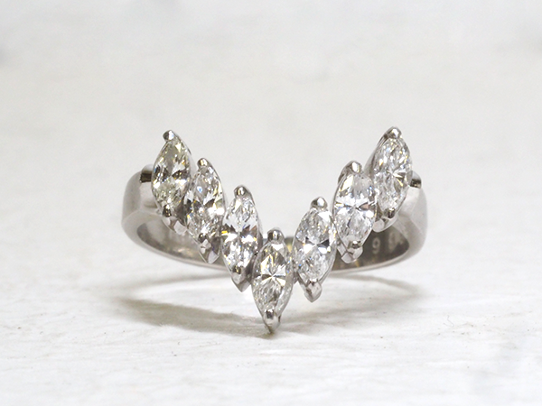こちらもお母様の形見のマーキスカットダイヤモンドがV字に連なっている0.66ctの古いリングです✨