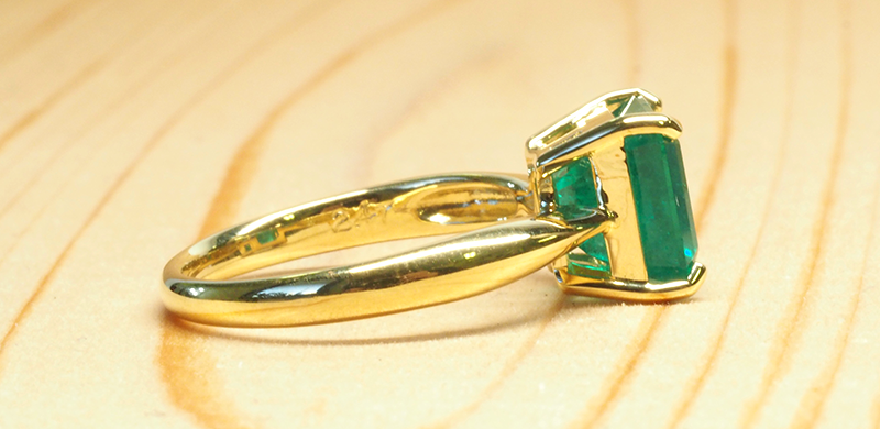 エメラルドのグリーンがゴールドの枠に映えて