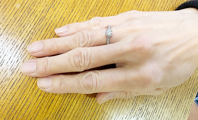 お持ちいただいたのは0.705ctの立爪ダイヤモンドリングです✨