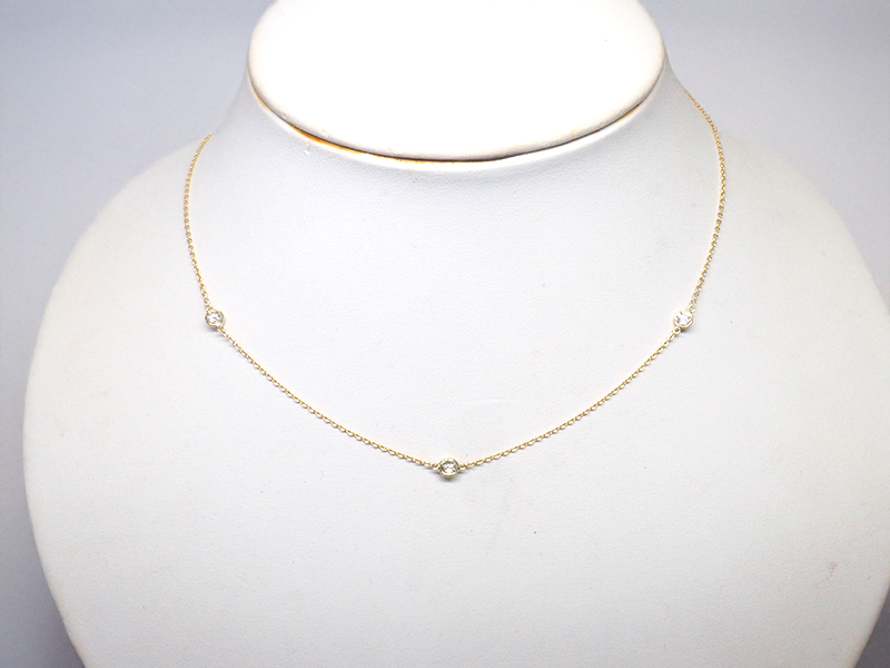 古い枠から取り外したダイヤモンドルース3つをK18製ステーションネックレスへリフォーム